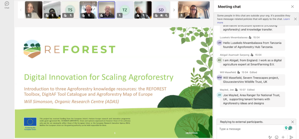 On 18 February 2026, more than 70 participants from all over the world joined the ReForest webinar “Digital Innovation for Scaling Agroforestry”, bringing together researchers, digital tool developers, advisors, and […]